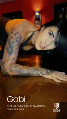 Estilo e Confiança: Gabi exibe uma presença poderosa, com uma arte corporal que conta histórias e um olhar que promete mistérios. Ela é a definição da mulher que sabe o que quer.